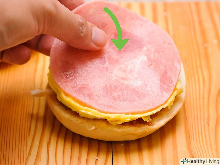 Додавайте нежирне м'ясо.замість того, щоб подавати яйця з м'ясом, яке містить багато насичених жирів, віддавайте перевагу нежирним джерелам білка. Індичка, бекон або курячі сосиски є здоровою і смачною заміною сосисок зі свинини і бекону. Однак, будьте обережні, адже такі продукти часто містять багато натрію.[12] по можливості прибирайте з м'яса зайвий жир, щоб воно було більш корисним.[13]- Наприклад, якщо ви готуєте салат Кобб, замість традиційного бекону візьміть індичку.[14]