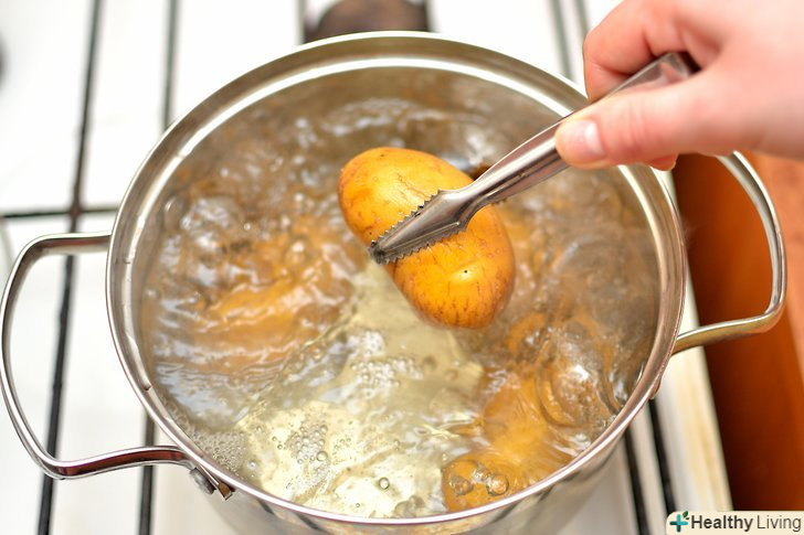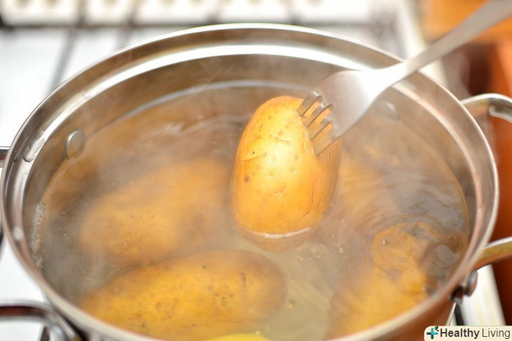 Доведіть каструлю з водою до кипіння на плиті.каструля повинна бути достатньо широкою, щоб вмістити картоплю, і ви повинні налити достатньо води, щоб повністю його покрити.