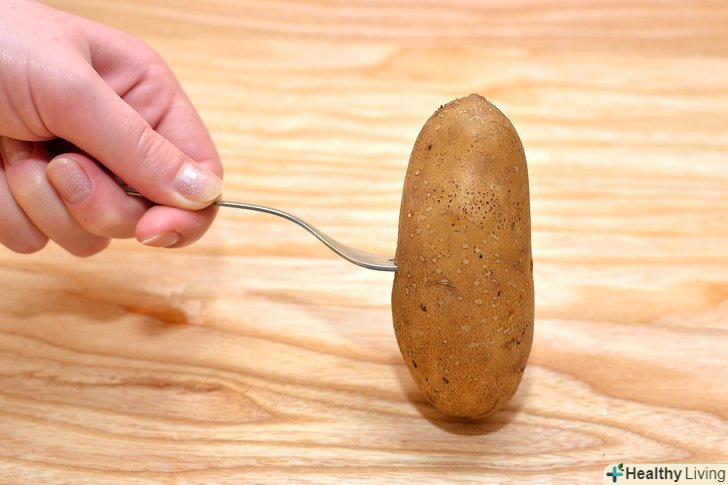 Пронизайте картоплю двозубою виделкою.тримайте вилку не домінуючою рукою. Вилка повинна увійти безпосередньо в середину картоплі, так щоб вам не потрібно було торкатися гарячої картоплі пальцями.