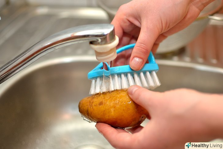 Картопля росте під землею, тому його шкірка накопичує багато бруду. Для найкращих результатів використовуйте нейлонову щітку або губку, щоб відмити шкірку картоплі.