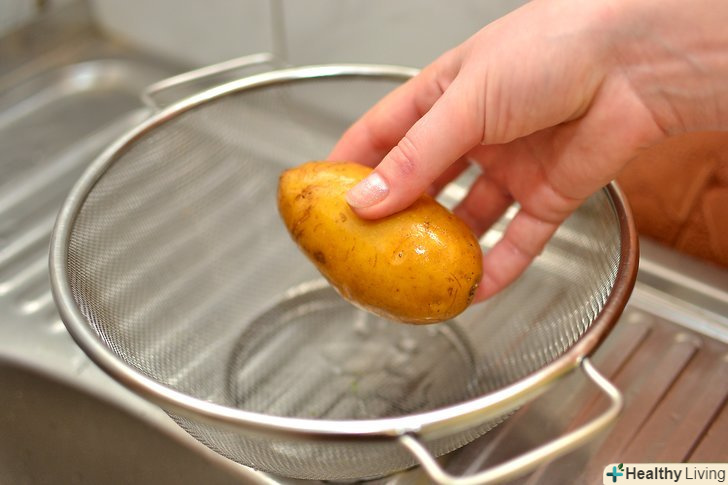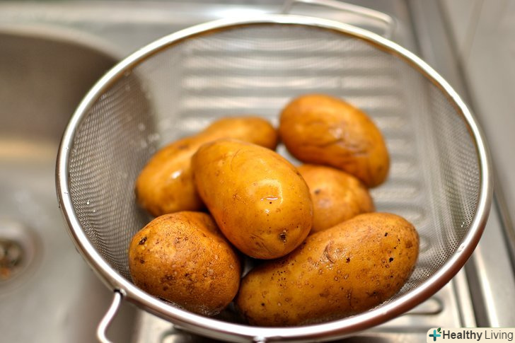 Промивайте кожну картоплину під холодною проточною водою, в той час як очищаєте її губкою або нейлоновою щіткою від бруду і сміття.
