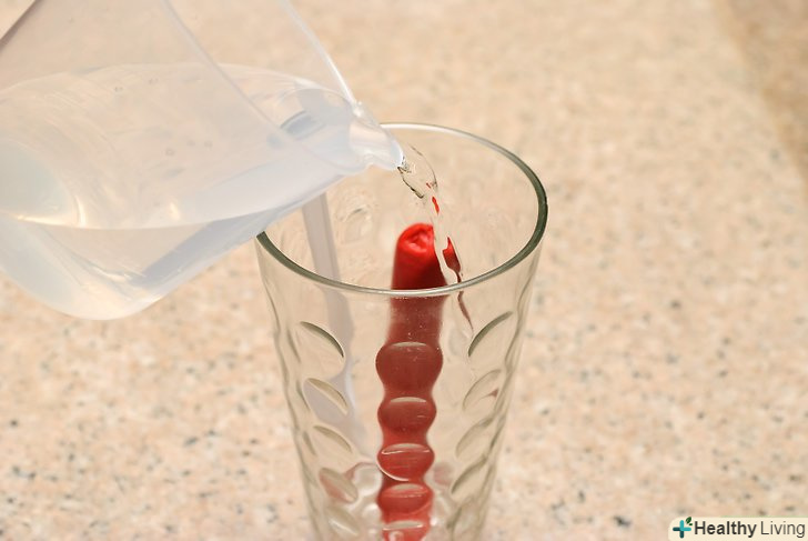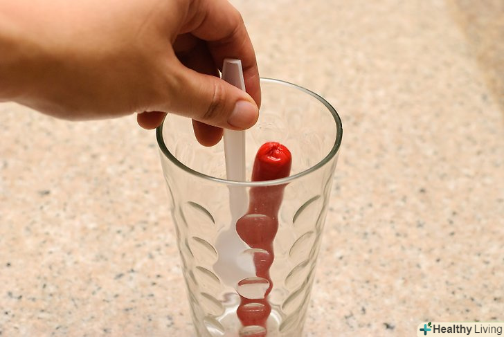 Заповніть склянку холодною водою, щоб вона покрила сосиску (але не вилку).важливо, щоб вода була холодною (оскільки сосиска з холодильника також буде холодною), тоді вода не закипить занадто рано, не приготувавши сосиску.