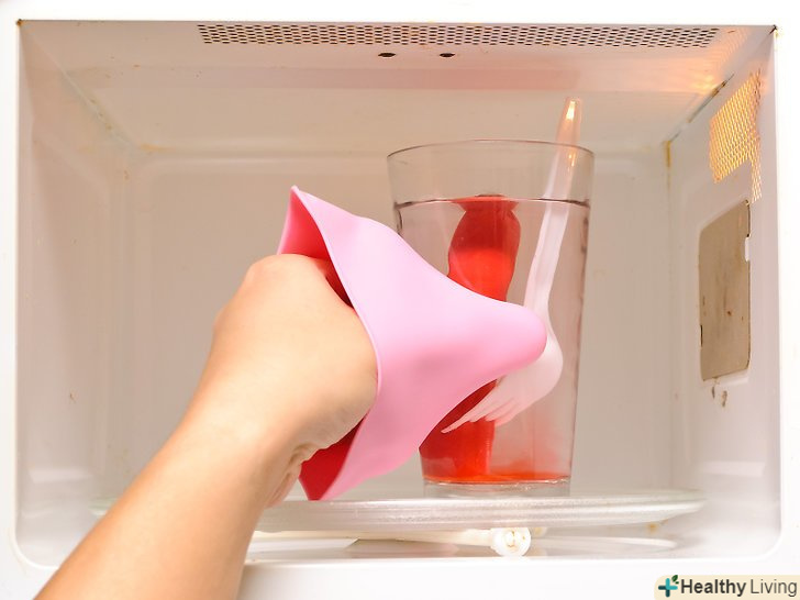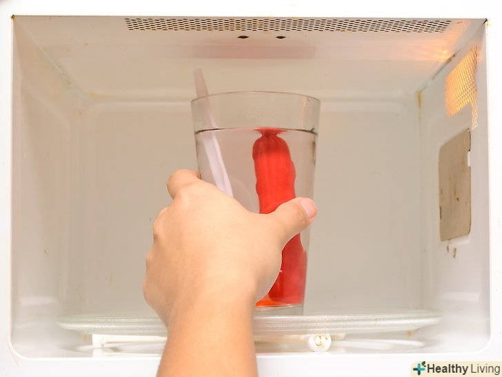 Поставте склянку в мікрохвильову піч.важливо: вилка не повинна торкатися будь-якої частини мікрохвильової печі, інакше можуть утворитися іскри. Якщо у мікрохвильовій печі є обертовий диск, переконайтеся, що вилка не торкається жодної з частин мікрохвильової печі під час розщеплення.- Призначення вилки в сосисці це утримувати її під водою, щоб кінець сосиски, що стирчить з води, не пересмажився через прямого впливу мікрохвиль (що станеться з більшістю сосисок, так як вони будуть плавати у воді).