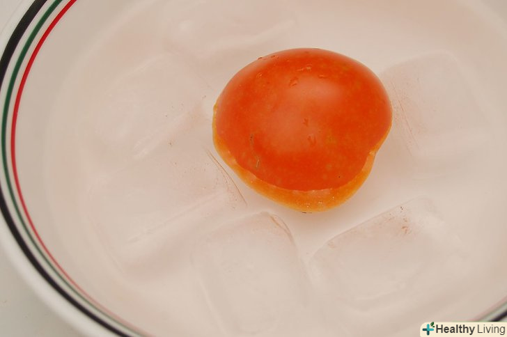 Перекладіть кожен помідор в миску з крижаною водою.залиште їх там досить довго, щоб помідори охололи.