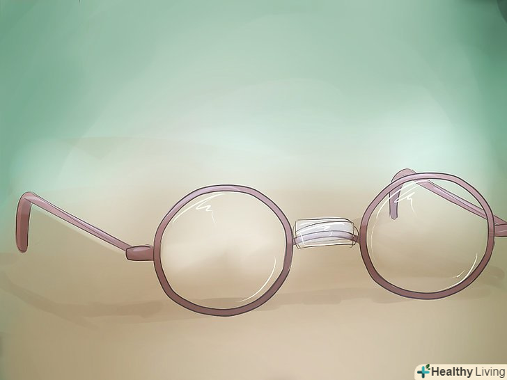Зробіть "зламані" окуляри.пошукайте в секонд-хендах або оптиках круглі окуляри в чорній оправі. Кілька разів оберніть прозорим скотчем оправу між лінзами, як це зробив Гаррі, коли його окуляри зламалися.- У магазинах іграшок продаються іграшкові окуляри з носом і вусами. Якщо відрізати зайві частини (вуса і ніс), то вони ідеально вам підійдуть.[1]