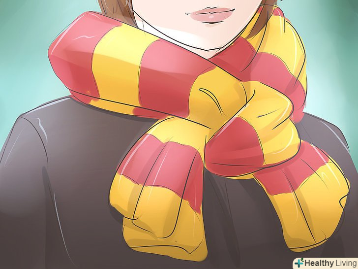 Зробіть червоно-золотистий шарф.якщо вам пощастить, ви можете знайти шарф в червоно-золотисту смужку в магазині одягу або попросити когось зшити або зв'язати такий. В іншому випадку, доведеться поки обійтися звичайним червоним шарфом. Додати жовті або золотисті смужки можна так:- Оберніть шарф по спіралі жовтою стрічкою. Прикріпіть стрічку степлером або пришийте її до шарфу.