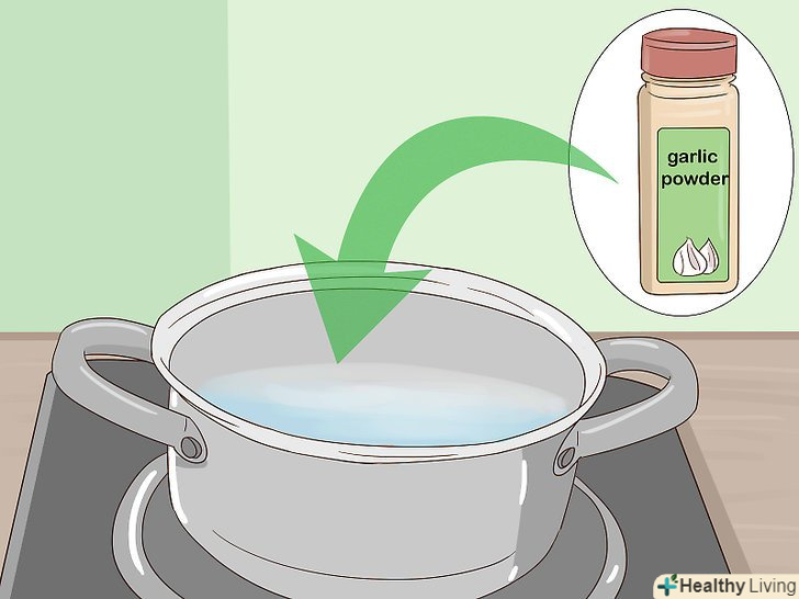 Додайте часниковий порошок.для додаткового смаку додайте у воду пів чайної ложки (1,5 г) часникового порошку, перш ніж нагріти її. Не використовуйте свіжий, рубаний часник, оскільки він може приготуватися нерівномірно, до того ж він не розчиняється, як порошок.[10]