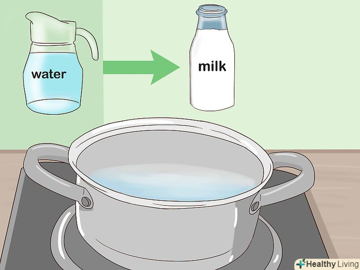 Замініть воду більш густим молочним продуктом.замість того щоб гріти воду, використовуйте суміш молока і вершків або згущене молоко. Це додасть пюре вершковий смак і більш м'яку текстуру, оскільки жир загусне пластівці.[12]