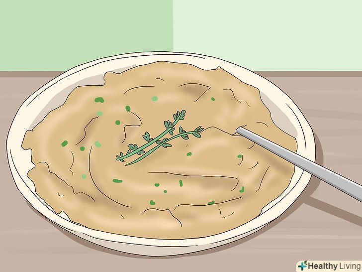 Збийте пюре і подайте до столу.візьміть вилку і акуратно збийте пюре. Розділіть пюре на три порції і відразу подайте до столу.[5]- Залишки пюре можна помістити в герметичний контейнер і зберігати в холодильнику протягом 3-5 днів.
