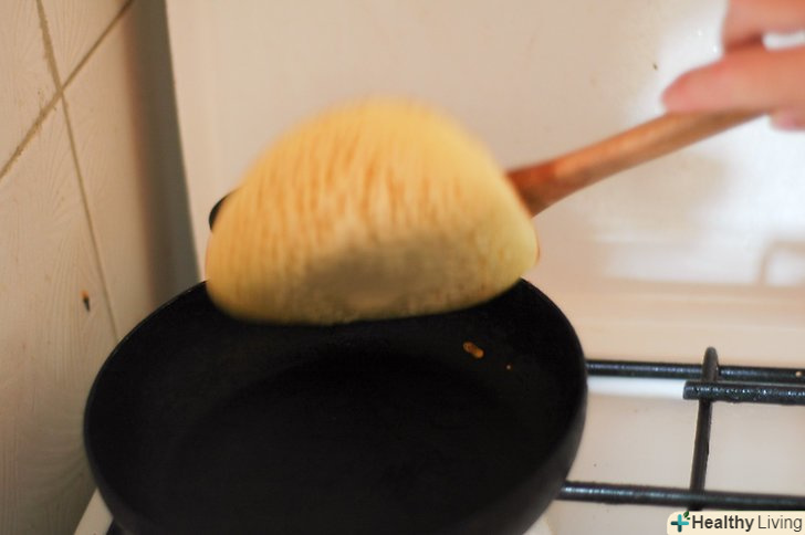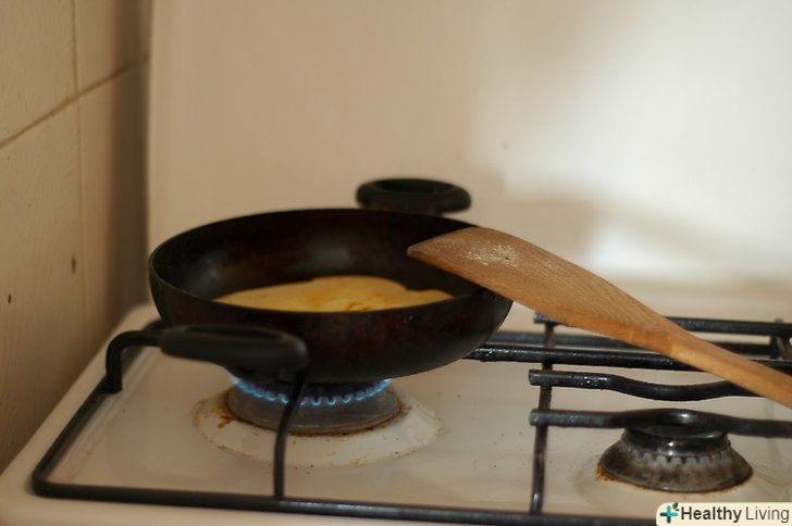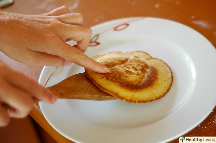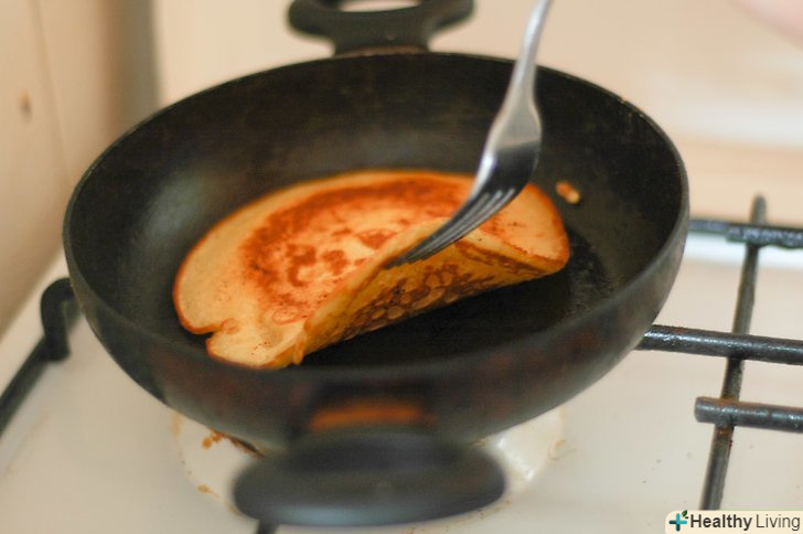 Підніміть лопатку з млинцем і швидко переверніть його.якщо ви будете діяти повільно, млинець може порватися. Не потрібно натискати на поверхню млинця лопаткою або виделкою. Не потрібно піднімати млинець занадто високо над сковородою.