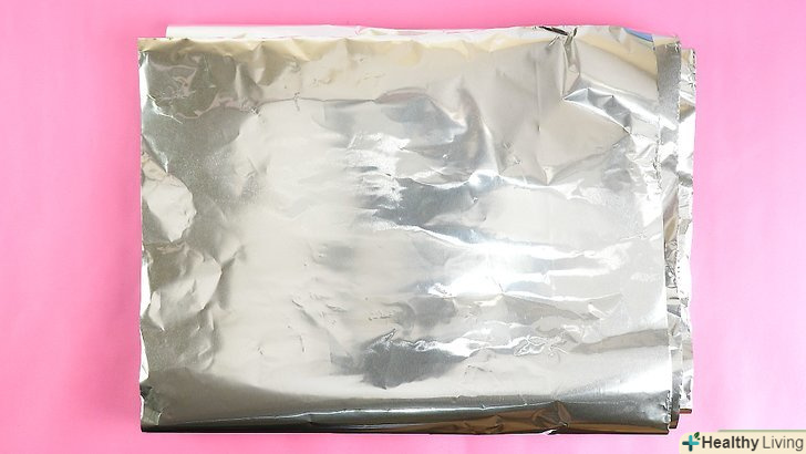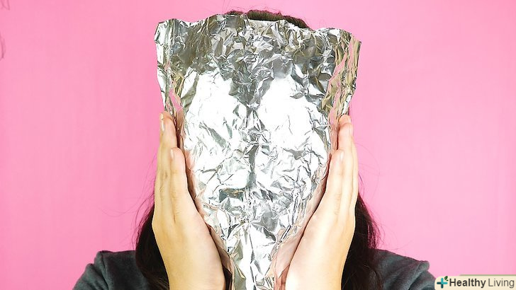 Складіть разом 8-10 листів алюмінієвої фольги, щоб вийшла досить товста стопка.виріжте 8-10 приблизно однакових листів алюмінієвої фольги. Вони повинні бути досить великими, щоб повністю закривати ваше обличчя. Складіть ці листи разом і натисніть на них.[10]- Злегка пам'ятайте листи фольги, потім знову розпряміть їх. Так вони краще" пристануть " один до одного.