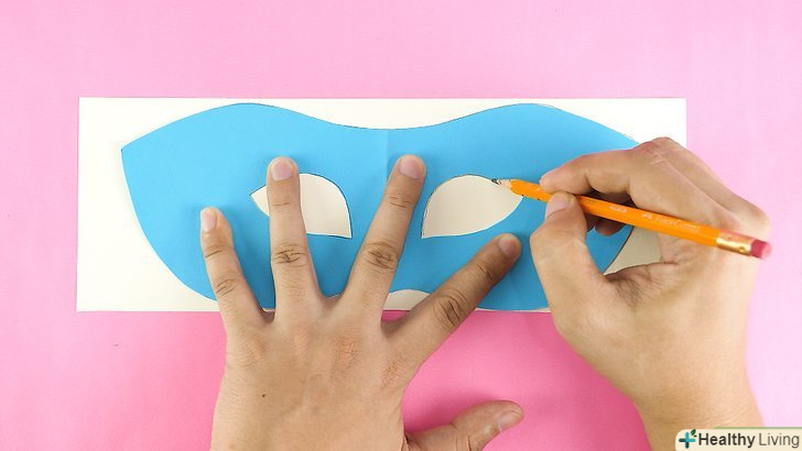 Покладіть маску на картон, обведіть і виріжте її.хоча це і не обов'язково, так у вас вийде більш щільна і міцна маска. Просто покладіть паперову заготовку на картон і обведіть її, після чого виріжте маску з картону (не забудьте при цьому про прорізи для очей).[5]- Не згинайте картон. Просто розігніть паперову маску, покладіть її на картон і обведіть по краях.