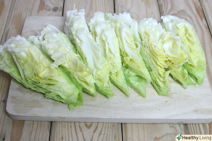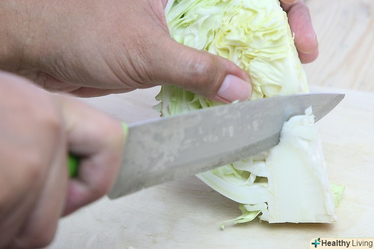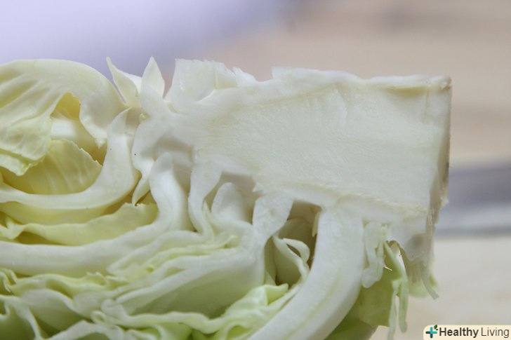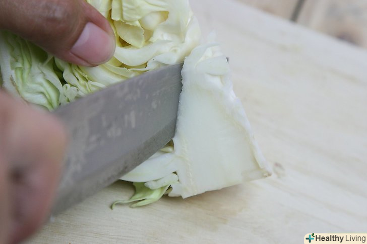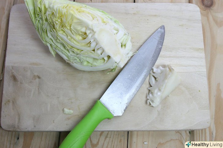 - Залиште ту частину серцевини, до якої кріпляться листя, це дозволить зберегти цілісність кожного шматка.[3] якщо ви повністю зріжете серцевину, то листя можуть відокремитися і відпасти. У будь-якому випадку капуста буде все ще їстівна, але цілісність шматків буде порушена.
