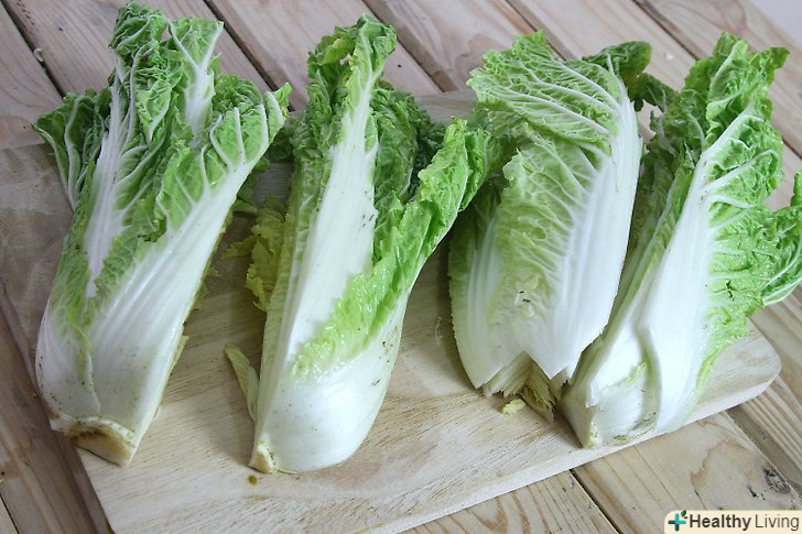 Видаліть верхні листки.Руками очистіть зіпсовані листя з качана капусти.- У довгій пухкої капусти відсутні товсті верхні листки, які є у круглої капусти. Тому вам потрібно буде видалити тільки мляві, зіпсовані і втратили колір листя.