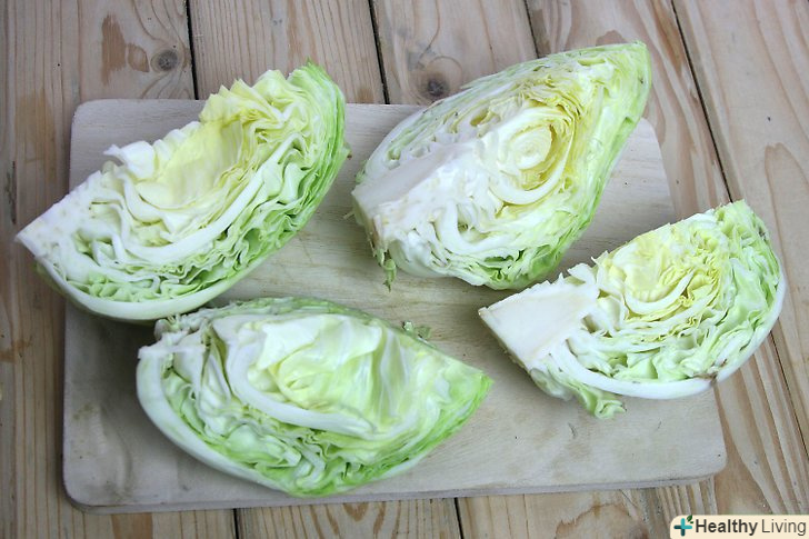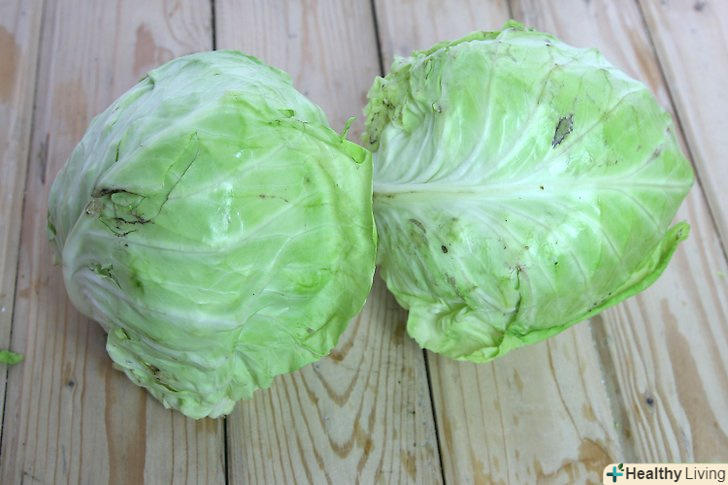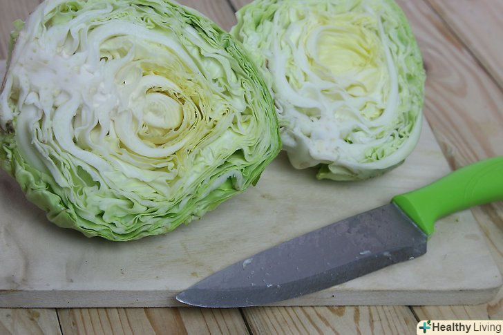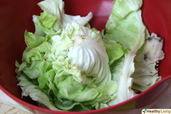 Зніміть зовнішні листя.очистіть руками качан від грубих або пошкоджених листя.- Зовнішні листя круглокочанной капусти досить щільні і товсті. Навіть якщо ці листя мають хорошу форму, все одно перед тим, як її різати, їх потрібно прибрати, оскільки вони жорсткі і не апетитні. У цьому є необхідність, особливо якщо ви збираєтеся вживати капусту в сирому вигляді.