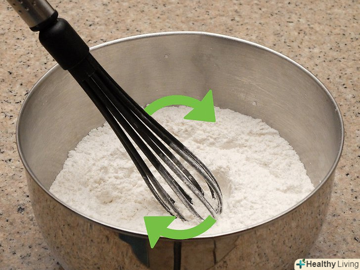 Просіювання за допомогою віночка.також можна використовувати віночок з дроту, щоб перемішати борошно в мисці. Хоча цей метод не зробить борошно настільки ж легкою і повітряної, як при використанні сита, але за допомогою цього методу ви все-таки розіб'єте грудочки і додасте борошні легкості.- Збивання також допомагає вбити двох зайців одним пострілом - можна змішати всі сухі інгредієнти разом і зробити борошно повітряної.[2]