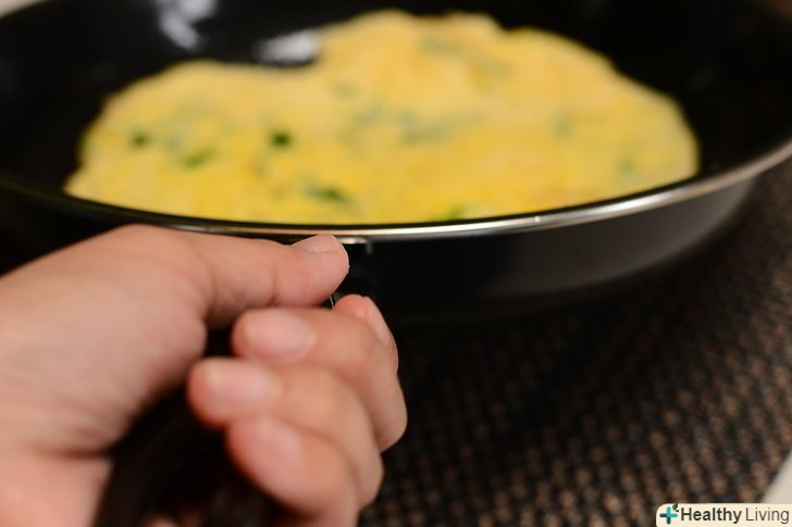 Злегка потрясіть або покачайте сковороду.дійте обережно, поки не відчуйте, що нижня сторона омлету відійшла від поверхні сковороди.