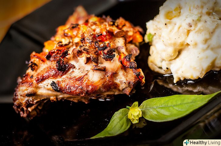 - Деякі вважають за краще відокремлювати шкіру від шматків м'яса птиці, в той час як інші вважають за краще їх залишати. Якщо блюдо перевірене і готове, шкіра може перетворитися на смачну хрустку скоринку, але це трохи підвищить жирність і загальну калорійність страви.[4]