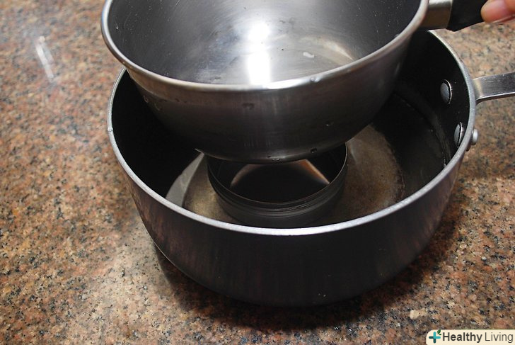Поставте маленьку каструлю У Велику.кількість води у великій каструлі залежить від того, що ви будете нагрівати. У деяких рецептах потрібно, щоб вода стосувалася дна маленької каструлі, в інших рецептах маленька каструля повинна нагріватися парою від киплячої води без безпосереднього контакту.