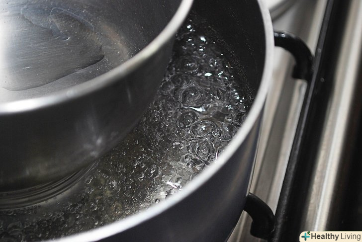 Нагрівайте велику каструлю, поки вода не закипить.кипляча вода буде нагрівати маленьку каструлю. Це можна робити на плиті і в духовці.