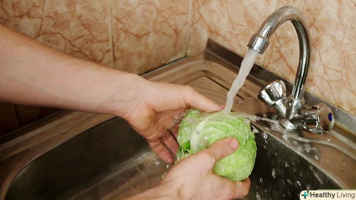 Слід попередньо обполоснути і висушити качан.Тримайте капусту під прохолодною проточною водою. Тріть її чистими пальцями, щоб позбутися від бруду, мікробів і пестицидів. Потім просушіть паперовим рушником.