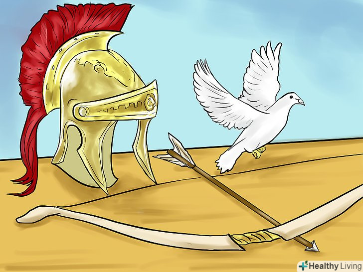 Доповніть свій костюм відмінними рисами конкретної грецької богині.наприклад, візьміть в руки невеликий музичний інструмент, якщо ви зображуєте якусь музу. Або ж візьміть з собою відмітний предмет який-небудь відомої грецької богині. Афродіта може тримати в руках голуба (штучну птицю можна придбати в більшості магазинів з товарами для рукоділля), Артеміда – мисливський лук, а у Афіни замість корони на голові буде бойовий шолом.