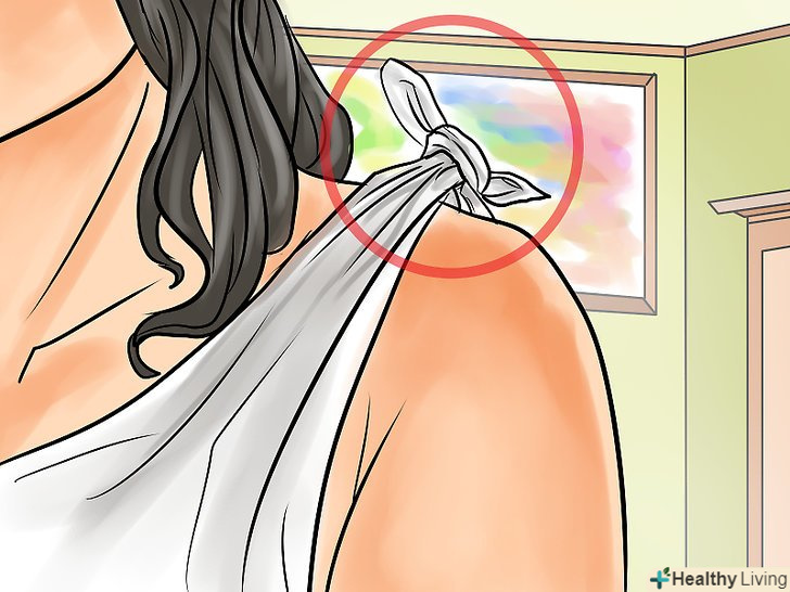 Завершіть зав'язування тоги. Оберніть лівий кінець тканини навколо себе. Коли цей кінець знову виявиться виведеним вперед, притягніть лівий куточок тканини до правого плеча і зв'яжіть його вузлом з правим куточком.- Для надійності зав'яжіть куточки тканини подвійним вузлом. Підсуньте кінчики куточків в вузол або під тканину, щоб вони не стирчали.