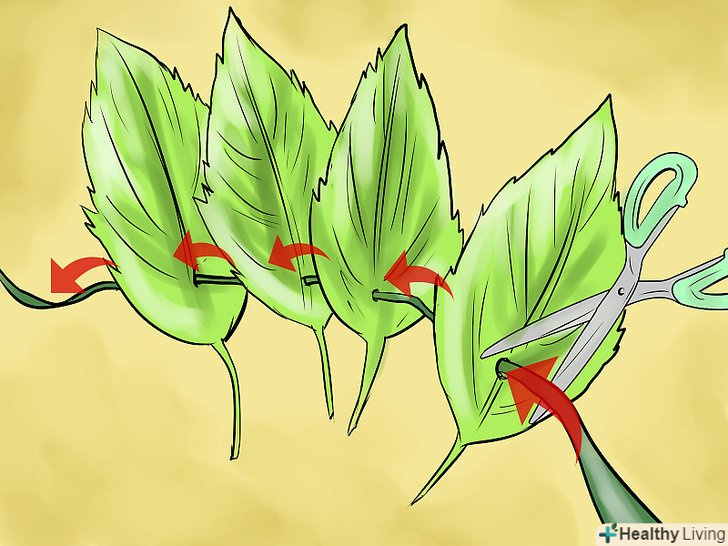 Прикріпіть до обідка листя.візьміть ножиці, виконайте з їх допомогою невеликі отвори в штучних листках і нанижіть листя на свій ободок по одному. Деякі люди вважають за краще використовувати ціле море листя, тоді як інші - лише кілька штук; це все справа вашого особистого смаку.- Коли закінчите нанизувати листя, скріпіть кінці обідка, і ваша корона буде готова.[5]