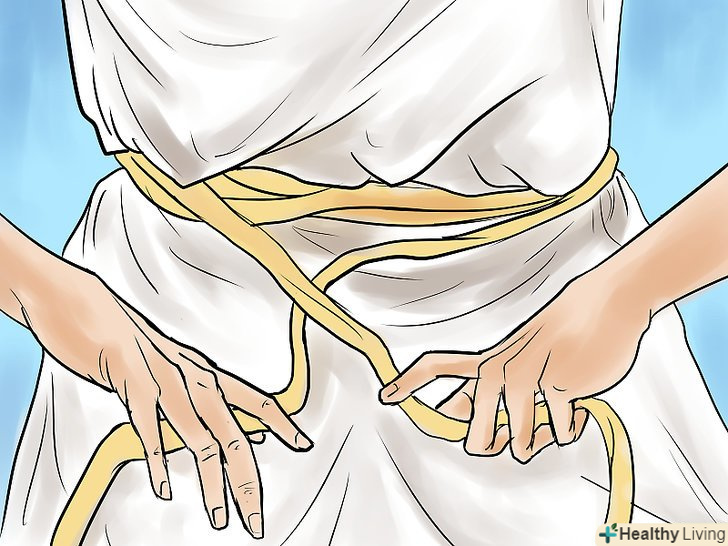 Пов'яжіть пояс поверх тоги.замість сучасного ременя візьміть для цього просту мотузку або золотистий шнур або стрічку. Кілька разів оберніть взятий матеріал навколо талії, перш ніж зав'язувати вузол. Так ваш костюм вийде більш наближеним до реального. Пояс вам слід зав'язати саме вузлом, а не бантом.