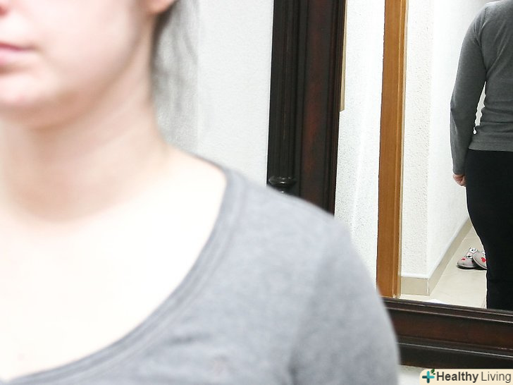 Поставте дзеркало.дзеркало допоможе вам побачити себе з боку. Якщо у вас немає відповідного дзеркала, скляні двері або величезне вікно також зійдуть. Це допоможе вам перебувати в найбільш освітленій частині приміщення.