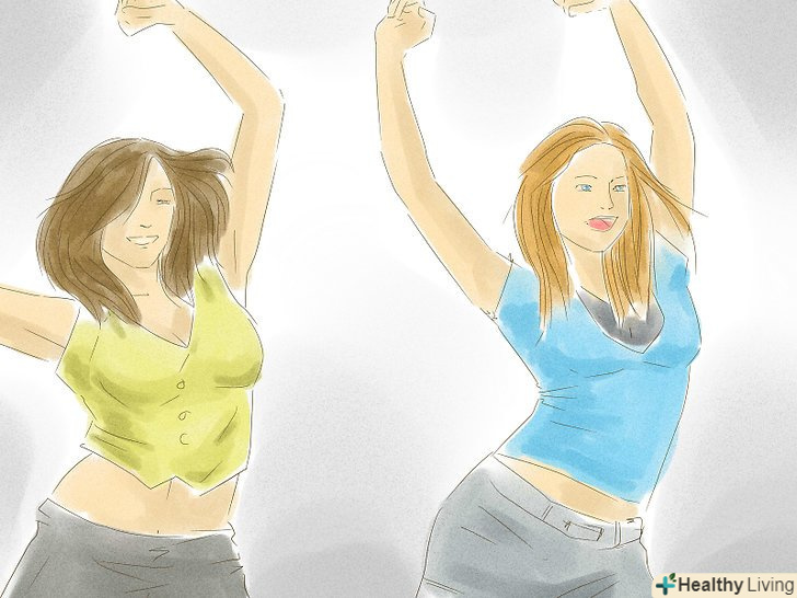 Танцюйте з друзями.практикуватися в танцях одному може бути нудно, до того ж, У інших можна навчитися будь-яким новим рухам. Знайдіть танцювальну студію неподалік, спортзал або ж просто танцюйте на вулиці! Зберіть своїх друзів, включайте музику і імпровізуйте!- Навіть якщо вамздається, що з боку ви виглядаєте неважливо, важка праця в кінцевому підсумку винагороджується. Не звертайте уваги на сторонніх, просто практикуйтеся з друзями, і хто знає? Можливо, в майбутньому ви станете кращою танцювальною групою в світі.