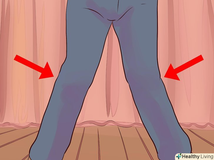 Зведіть коліна разом!затримайтеся в попередній позі на час, достатній, щоб хор проспівав " зведіть коліна ..." ("bring your knees in..."). Коли настане черга слова "разом" ("tight"), швидко зблизьте коліна, не пересуваючи ступні. Руки продовжуйте тримати на поясі, підтримуючи рівновагу за допомогою рухів стегнами.- При тренуваннях не надто турбуйтеся про час, необхідний для виконання рухів. Легше дотримуватися ритм, тренуючись під музику, або танцюючи разом з іншими людьми.