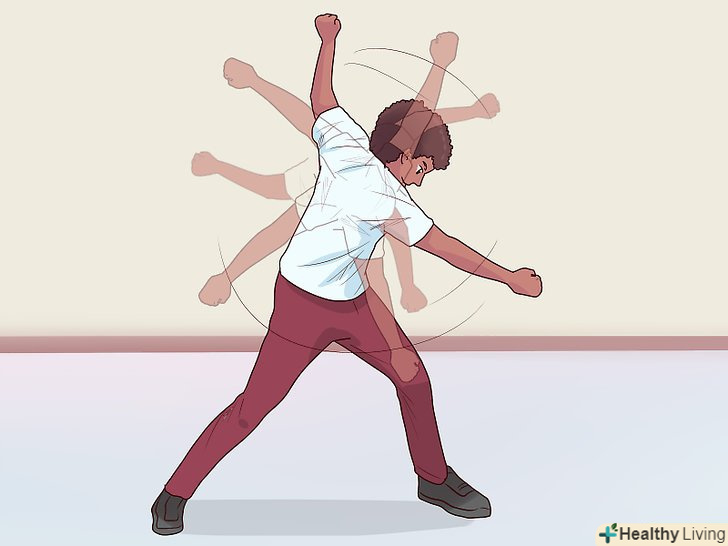Робіть кидки, коли музика стане важче і почне звучати дуже жорстко.розгойдуйте своїми руками навколо зі стиснутими кулаками назад і вперед в передній частині вашого тіла, можливо, балансуючи однією ногою і підгинаючи ноги з зігнутими колінами. Це допоможе додати ефекту, і зробити вигляд, як ніби вам немає абсолютно ніякого діла до благополуччя або безпеки будь-якого навколо вас. Цей рух, як правило, називають "вітряком".