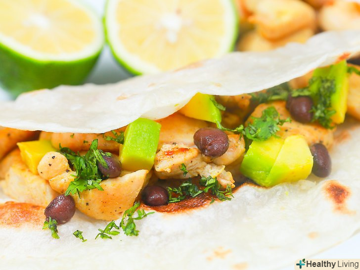 - Збільште кількість білка в буріто, додавши в нього трохи пісного м'яса. Вегетаріанське м'ясо з соєвих бобів містить кількість білка, порівнянне з традиційними видами м'яса, включаючи Канадський бекон, пісну шинку, бекон з індички або підкопчений лосось.[5]