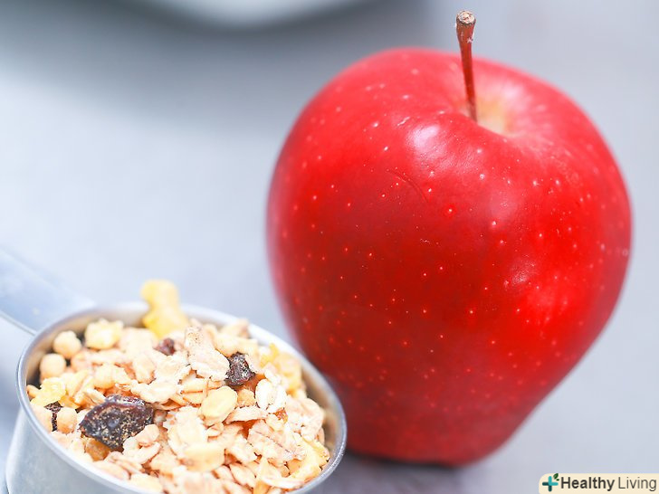 Почніть день з теплою вівсянки.класичний варіант сніданку з вівсянки корисний великим вмістом клітковини і дає відчуття ситості; до того ж в неї можна легко додати інші інгредієнти, такі як горіхи і сухофрукти, щоб збільшити вміст білка та інших корисних речовин.[12]- Використовуйте звичайні вівсяні пластівці, необроблений овес або суміш з ячменю, жита та інших зернових культур.