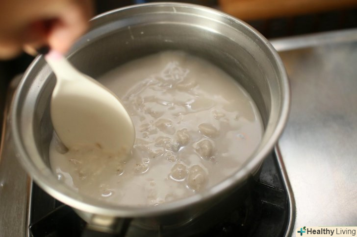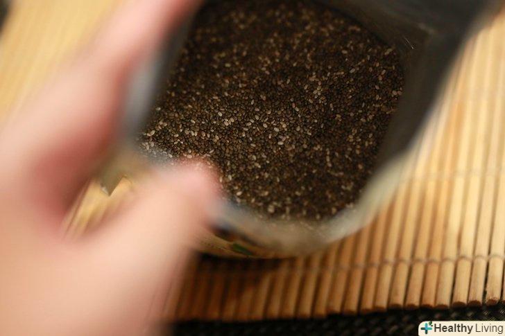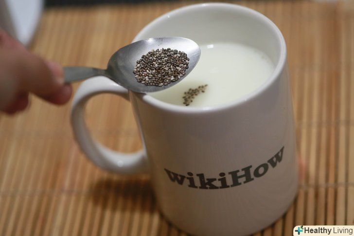 Приготуйте кашу з насіння Чіа.розведіть 1-2 столові ложки насіння Чіа (10-20 г) в чашці (240 мл) теплого молока або його аналога. Залиште суміш на 10-15 хвилин, поки та не загусне до консистенції гелю. Втім, час від часу помішуйте її, щоб насіння не злиплися грудками. Таку кашу можна їсти сирою або теплою.[2][3] Сама по собі така каша несмачна, тому цілком доречно буде чимось її підсолодити-фруктами, сухофруктами, горіхами, медом, корицею або навіть морською сіллю, але це вже на ваш смак.- З двох столових ложок (30 мл) вийде густа каша. Якщо ви не шанувальник густої каші, кладіть поменше насіння.