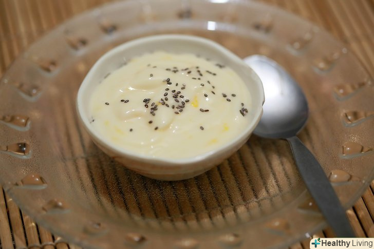Посипте насіння Чіа на вівсянку, йогурт або інший корисний продукт.Один з найбільш поширених способів вживати Чіа - це додати або змішати їх з іншими стравами. Якщо додати насіння на вологу їжу, то вони стануть м'якими і желатиноподібними, що допоможе їх «приховати».- Додайте Чіа в свій сніданок, посипавши 1 або 2 ст.л. (10 або 20 г) насіння Чіа на вівсянку, йогурт або мюслі.