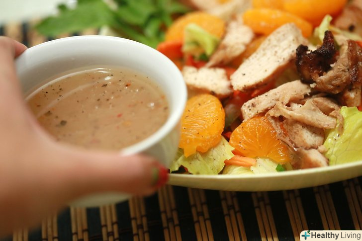 Щоб насіння Чіа залишилися хрусткими, посипте їх на їжу.якщо їжа спочатку суха, то насіння залишаться хрусткими, що подобається деяким людям. Втім, навіть на сирих і вологих продуктах насіння Чіа можуть і не перейти в гелеподібну консистенцію (якщо їх, звичайно, не перемішувати).- Заправте насінням салат.