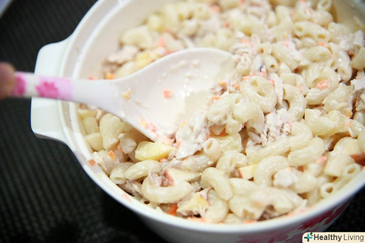 Сховайте насіння Чіа в їжі в одній страві.це особливо корисно, якщо у вас вдома є вибагливі їдці, які можуть насміхатися над вживанням цих крихітних насіння.- Змішайте насіння Чіа з картопляним салатом або з холодним салатом з макаронами. Додайте 1 або 2 ст.л. (10-20 г) насіння Чіа до великого картопляного блюда або до салату з макаронів і повністю розмішайте.