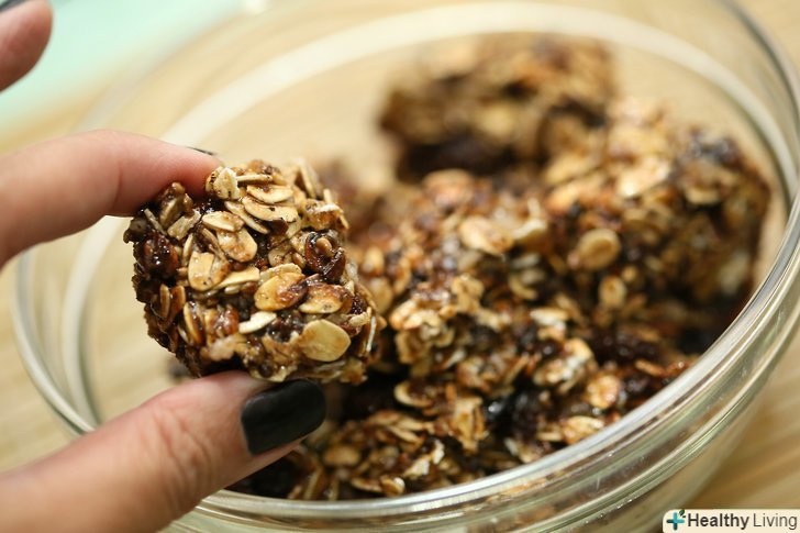 Приготуйте плитку граноли з насінням Чіа.додайте 2 ст. л. (20 г) насіння Чіа до Вашого рецепту приготування плитки граноли. Рецепт, що не вимагає запікання, такий: змішайте насіння з чашкою нарізаних фініків без кісточок, ¼ чашки арахісового масла або іншої горіховою пасти, 1 ½ чашками геркулесу, 1/4 чашки меду або кленового сиропу, а також з 1 чашкою роздроблених горіхів.[1] вилийте суміш на сковороду і поставте ту в морозильник. В принципі, геркулес можна навіть злегка обсмажити, щоб трохи змінити його смак, але можна знайти і такий рецепт плиток граноли, який все ж вимагає запікання.