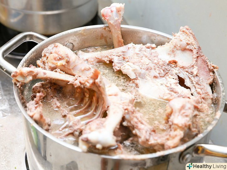 Приготуйте бульйон.налийте в супову каструлю 9 літрів води, покладіть туди кістки, морква, стебла селери, шавлія, розмарин, лавровий лист, перець горошком, зубчики часнику, розрізану навпіл цибулину. Накрийте розкладається кошиком для пароварки вміст каструлі, поклавши її нижньою частиною вгору. Доведіть до кипіння, а потім варіть на повільному вогні близько 6 годин (до тих пір, поки кістки не почнуть легко розламуватися), періодично помішуючи. Процідіть вміст каструлі через сито у велику закривається ємність. Поставте бульйон в холодильник на ніч і ранок, видаливши шар твердого жиру.
