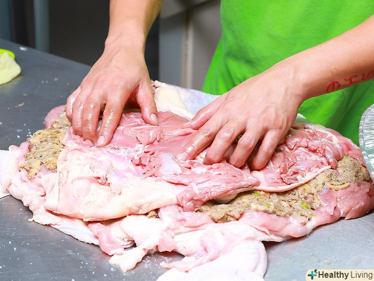 Закрийте турдакен.- Просуньте шампур через краї шкіри, так щоб вони утримувалися з'єднаними разом.