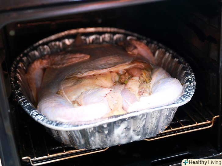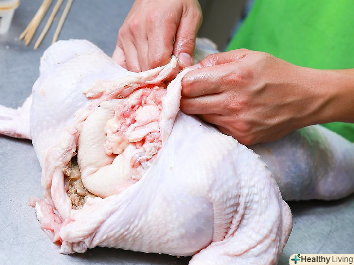 - Просуньте шампур уздовж кінця задньої частини індички, щоб закрити його.