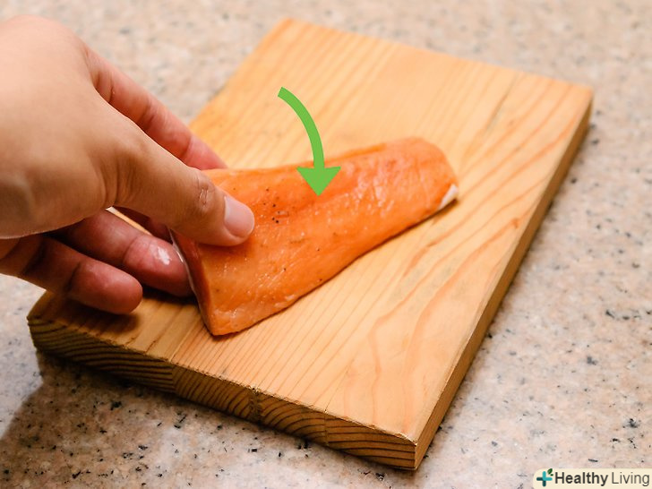 Приправте філе лосося сіллю і перцем.необхідно використовувати прості приправи, щоб не придушити аромат кедрової дошки.