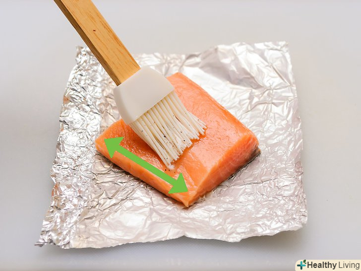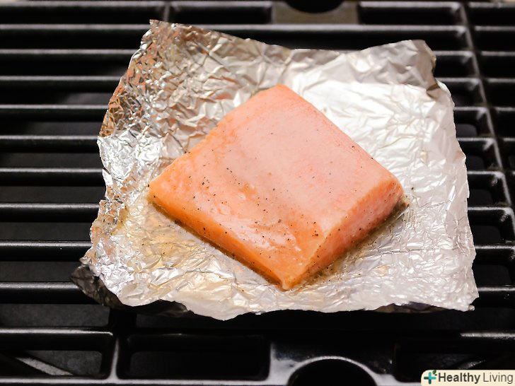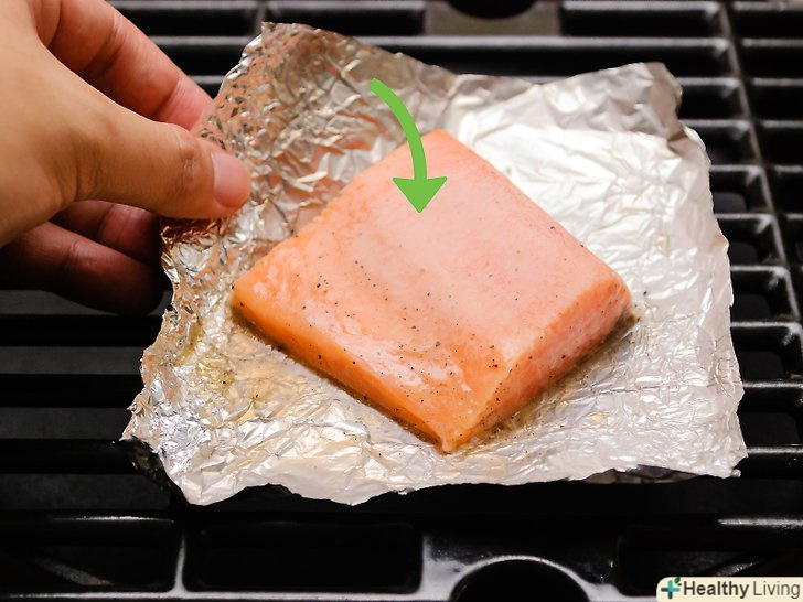 Змастіть маслом поверхню гриля.покладіть фольгу з шматочками лосося зверху верхньої частини решітки.