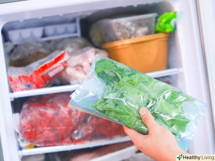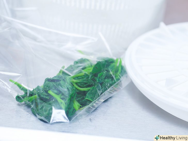 Зберігайте шпинат у морозильній камері.покладіть пакети зі шпинатом в морозилку для тривалого зберігання. Якщо ви все зробили правильно, то бланшований заморожений шпинат буде залишатися їстівним від 9 до 14 місяців.- Розморозьте шпинат в холодильнику за кілька годин до використання. Оскільки розморожений шпинат має дуже водянисту текстуру, його не можна вживати в сирому вигляді, але зате його можна буде додати в коктейлі і використовувати в готуванні.