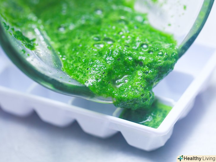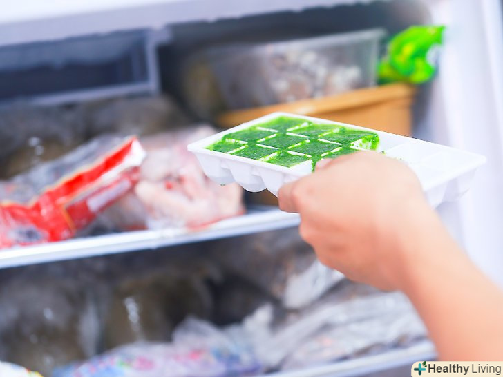 Заморозьте пюре.помістіть заповнені лотки в морозильник на чотири години або поки пюре зі шпинату не застигне.