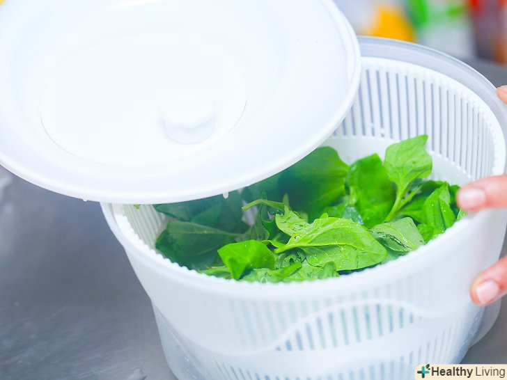 Ретельно просушіть.помістіть шпинат в сушарку для салату і вичавіть з нього якомога більше води.- Якщо у вас немає сушарки для салату, загорніть листя в паперові рушники і акуратно вичавіть зайву вологу. Потім дістаньте свіжі паперові рушники і викладіть на них листя, щоб вони просохли ще 10-15 хвилин.