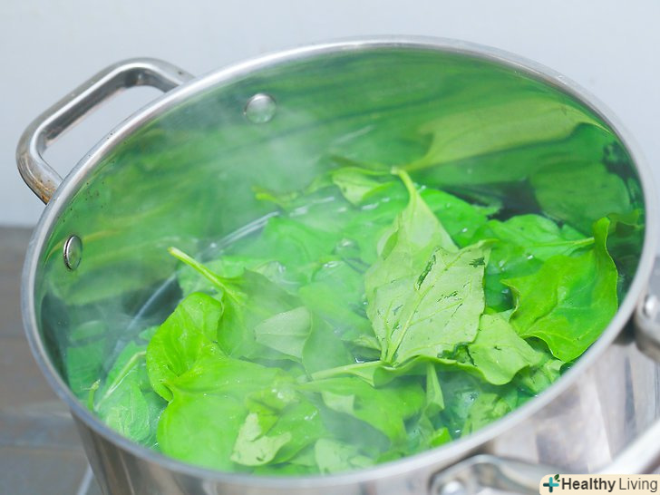 Закип'ятіть воду.наповніть каструлю водою, щоб її вистачило покрити шпинат, а потім поставте її на середній вогонь. Доведіть воду до кипіння.- Традиційна бланшування збереже колір і смак шпинату, але може привести до втрати деяких поживних речовин. Щоб знизити втрату поживних речовин, бланшируйте шпинат на пару. Приготуйтеся до бланшування парою, розмістивши парову корзину над каструлею з киплячою водою.[2]