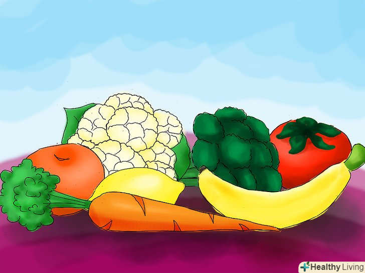 Збільште кількість клітковини в раціоні.експерти рекомендують 25-35 г клітковини в день, але багато дорослих отримують тільки 10-15 г.Клітковина підвищить ефективність вашої травної системи, що дозволить позбутися від рідких і твердих відходів.- Збільште кількість овочів і фруктів у вашому раціоні. Це основне джерело розчинної і нерозчинної клітковини. Вам потрібні обидва види клітковини для підтримки здорової травної системи.